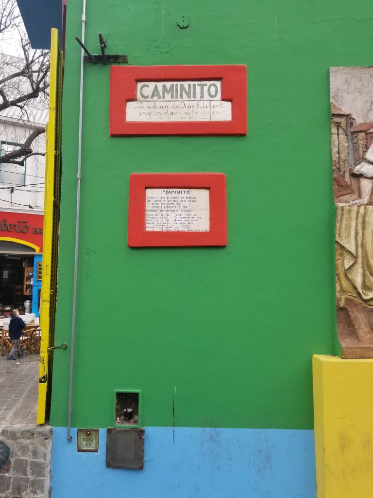 El Caminito, which means “little road” in Spanish, is a small section of the La Boca neighborhood. This section of only a few blocks is famous for being a living street museum. It has many little shops that cater to tourists as well as some eateries and a great deal of wall art. The cobbled-stone streets are also lined with artists selling their work.