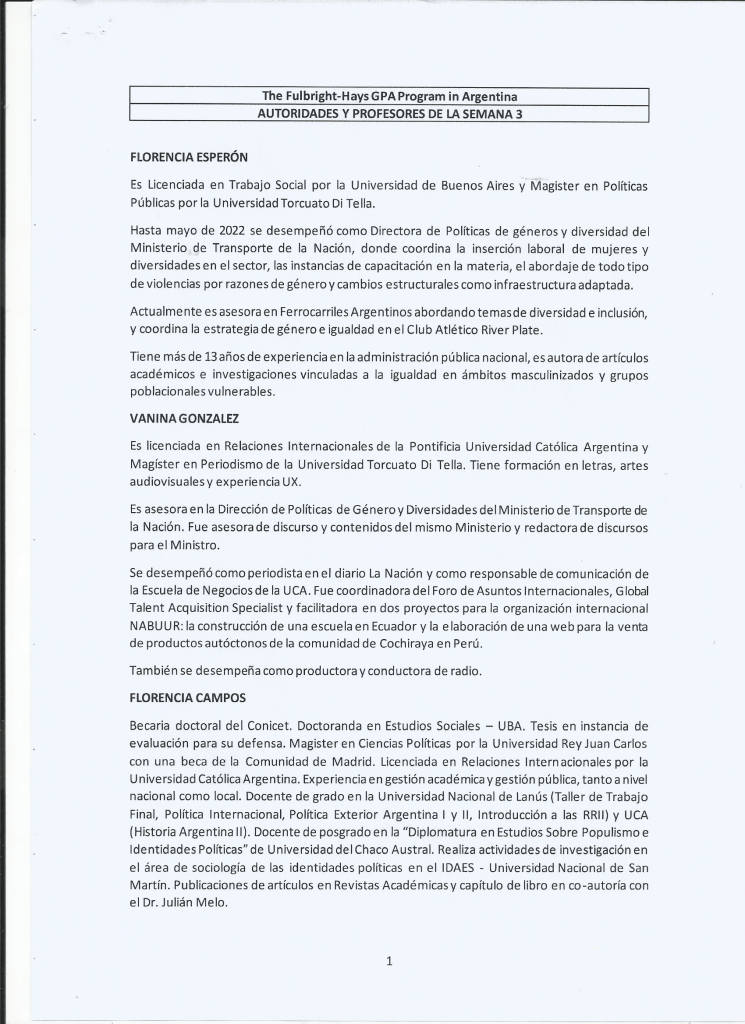 The following is a list of scholars/practitioners that shared their expertise with us in the many classes and workshops we had during our Argentina trip. All the classes were phenomenal and provided a wonderful opportunity to learn, ask questions, and discuss important and interesting topics.